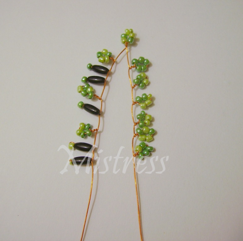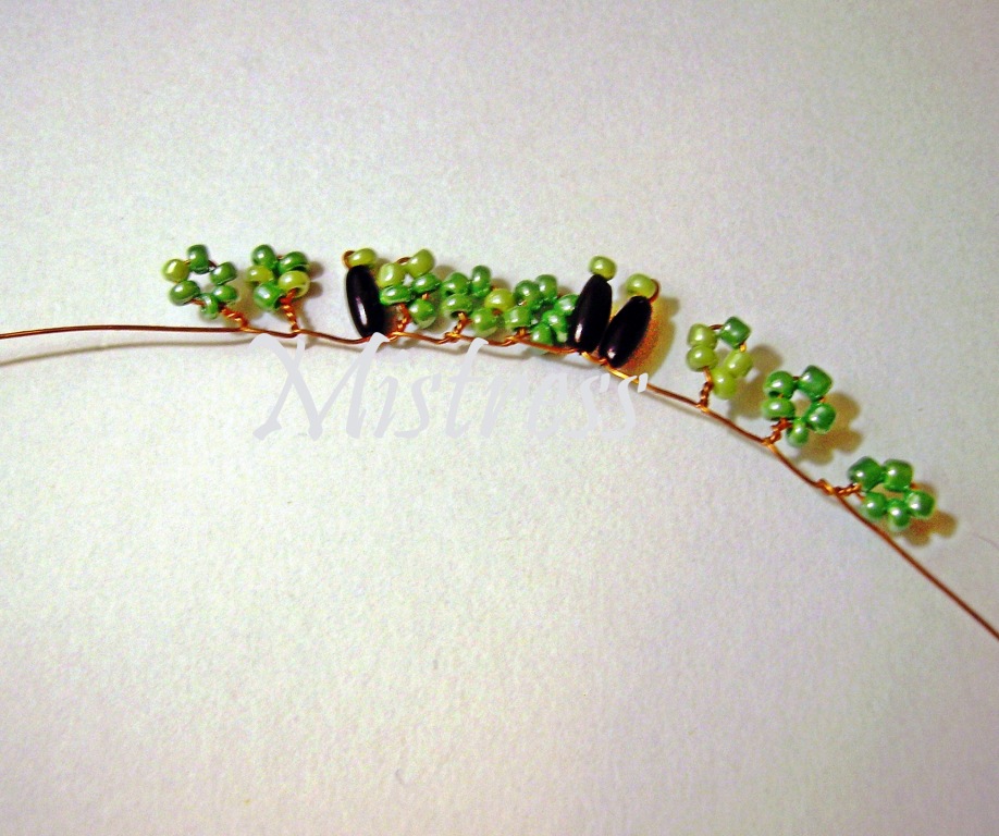 4. скручиваем проволоку под бисеринами на 5 - 6 витков.