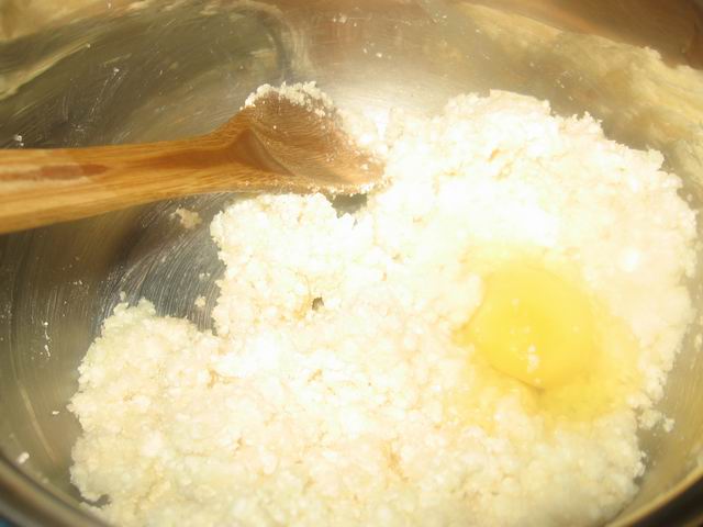 Творог перетрём с сахаром, лучше конечно протереть его сквозь сито, но сегодня не было на это времени.