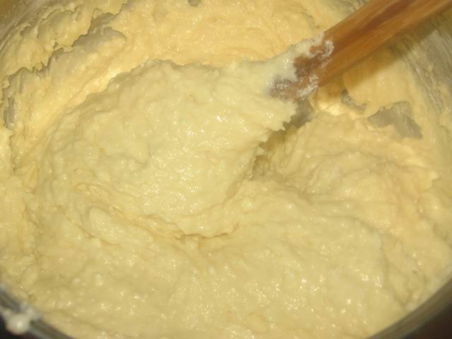 Аккуратно перемешаем. Готовое тесто выеладываем в кастрюлю мультиварки, разравниваем.