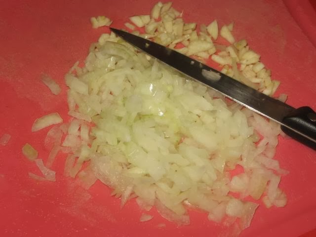 Приготовим лук, чеснок и припрау. Я использовала приправу для мяса.