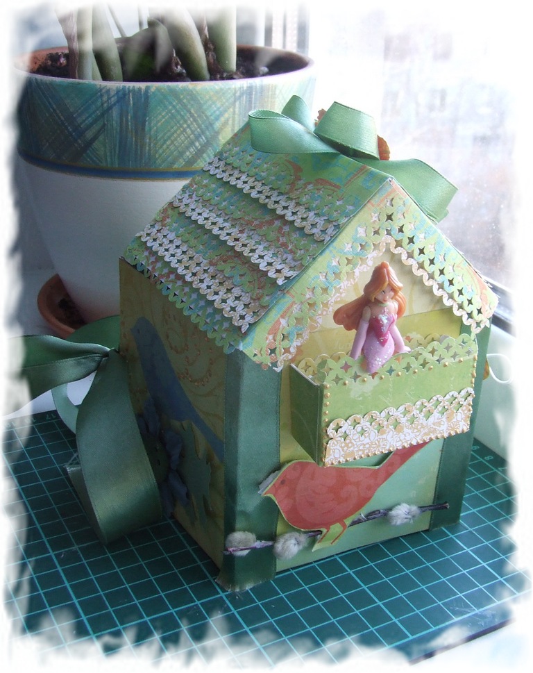 Напомню..... дело было в феврале...кругом мтель, вьюга...бррр...а домик получился зелененький, даже салатовый!!!