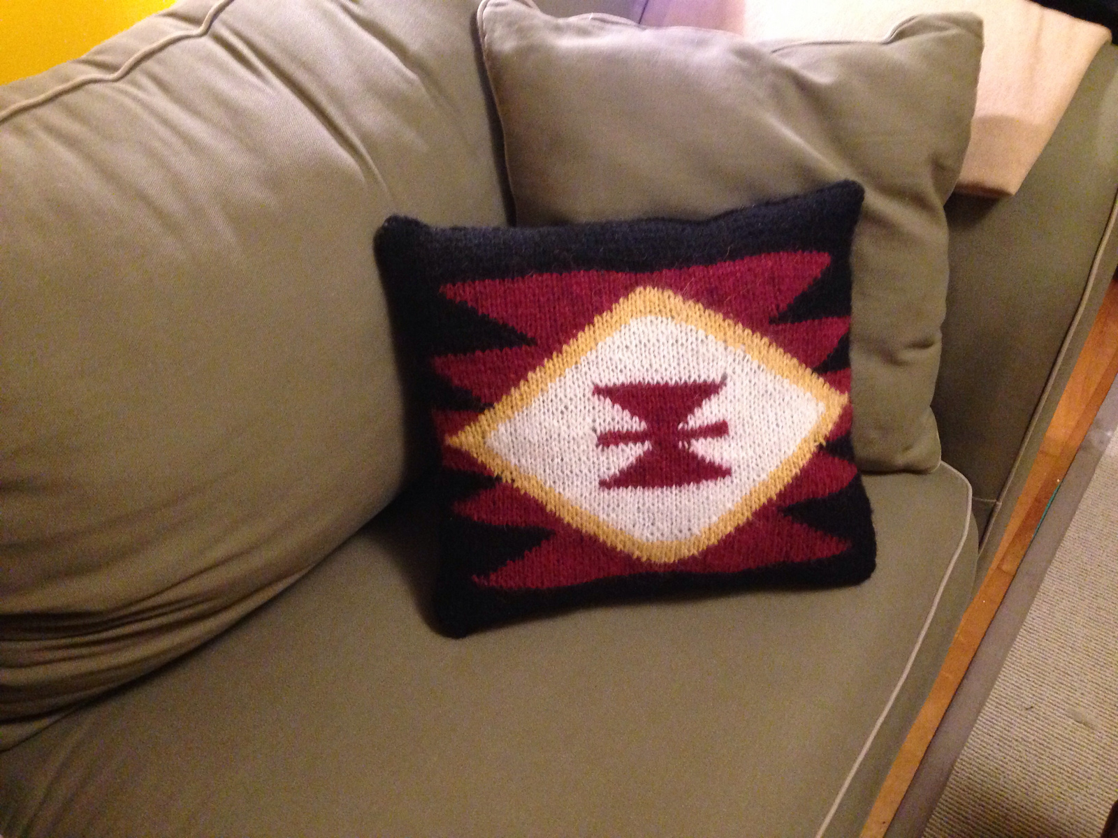 Подушка спицами с узором от ацтеков (схема)