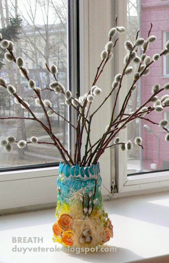 состоялся традиционный пасхальный мастер-класс. Делали из обычных банок вазочки для вербы, как раз к вербному воскресенью))