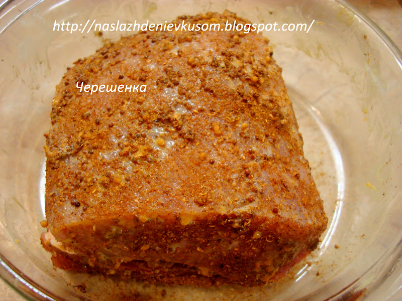 [показать]Специи перемешать… Натереть мясо специями, а затем горчицей… Положить в миску, накрыть крышкой или затянуть пленкой и поставить в холодильник на 3-4 часа, у меня стояла ночь…