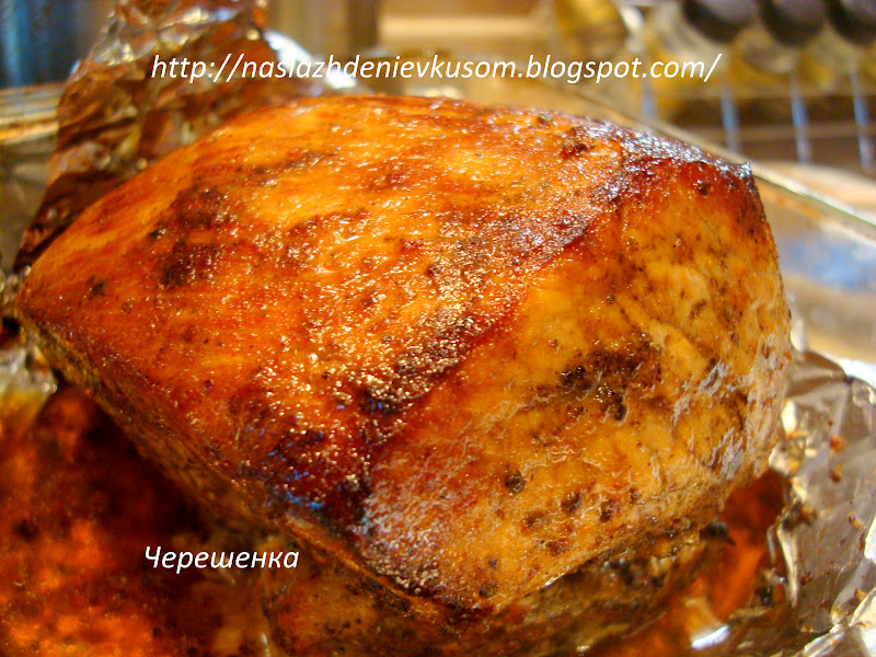 Ароматная свинина, запеченная в фольге! Не жирная, но и не сухая, нежная и очень вкусная! Горчица придает мясу особенный аромат, а вместе со всеми остальными специями получаются просто непередаваемый запах. Можно подавать как основное блюдо, горячим, а можно использовать в холодном виде как один из ингредиентов в салатах, сэндвичах и т.д. Рекомендую!!!