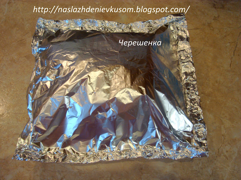 [показать]Упаковать обжаренное мясо в фольгу (блестящей стороной внутрь), заворачивая со всех сторон в несколько раз, чтобы сок, который будет выделяться при запекании не убежал… Мясо, упакованное в фольгу не должно касаться верхней стороны, т.е. нужно оставить около 5см сверху пустого места для воздуха, который будет там скапливаться…