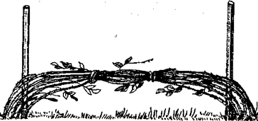 Обрезка малины: а — весеннее укорачивание стеблей до живой почки,б — вырезка отплодоносивших стеблей, в — удаление лишних побегов осенью или весной, укорачивание побегов на высоте 1,5–1,8 м