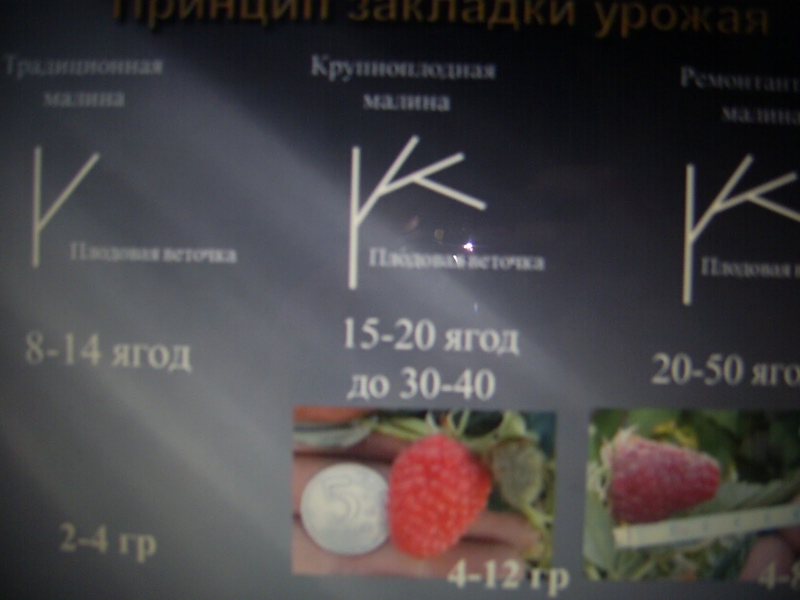 Тут мы видим, что традиционная малина дает с плодоносной веточки всего 8-14 ягод и вес ягоды мизерный - 2-4 грамм.