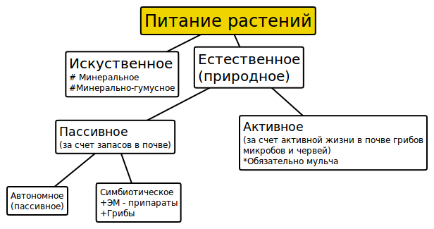 Активное питание - это за счет активной жизнедеятельности грибов, микроорганизмов и червей в почве. Обязательное условие - этомульча.