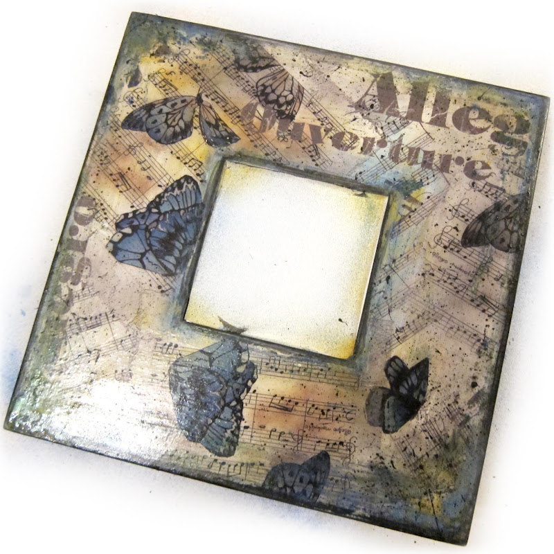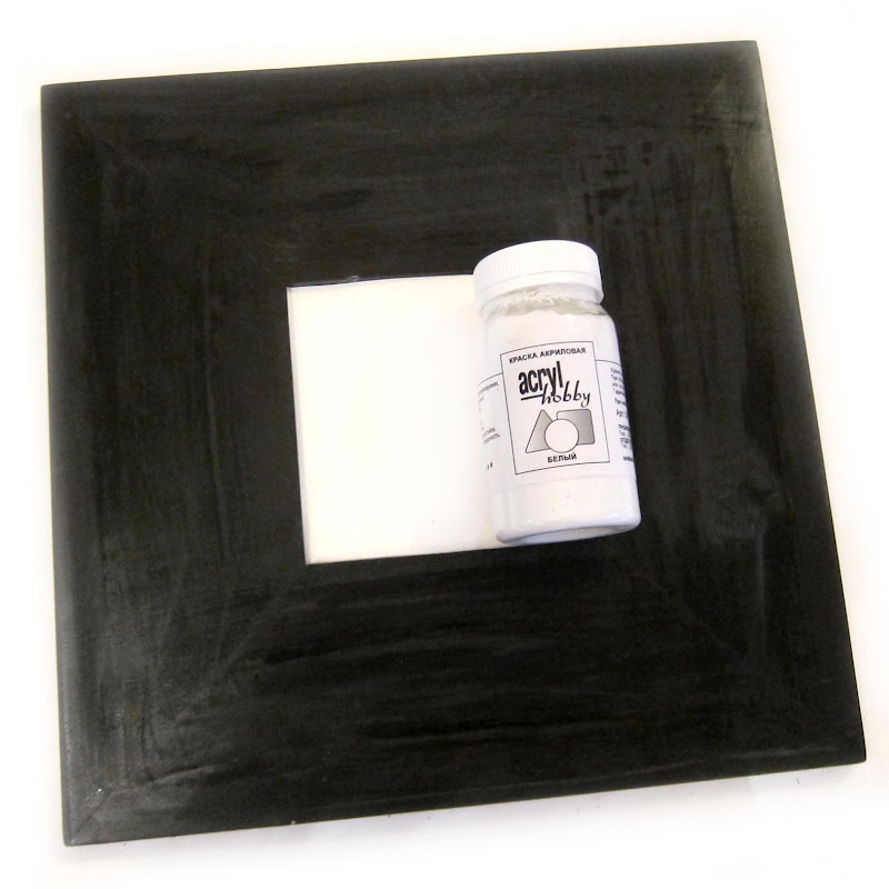 Для этой работы я взяла зеркало с черной рамой. Закрываем само зеркало с помощью бумажного квадратика.