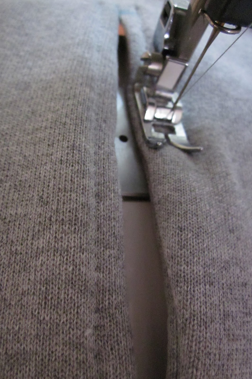 Шить края талии, взятые вместе, и растягивается, верхнюю кромку трусов.