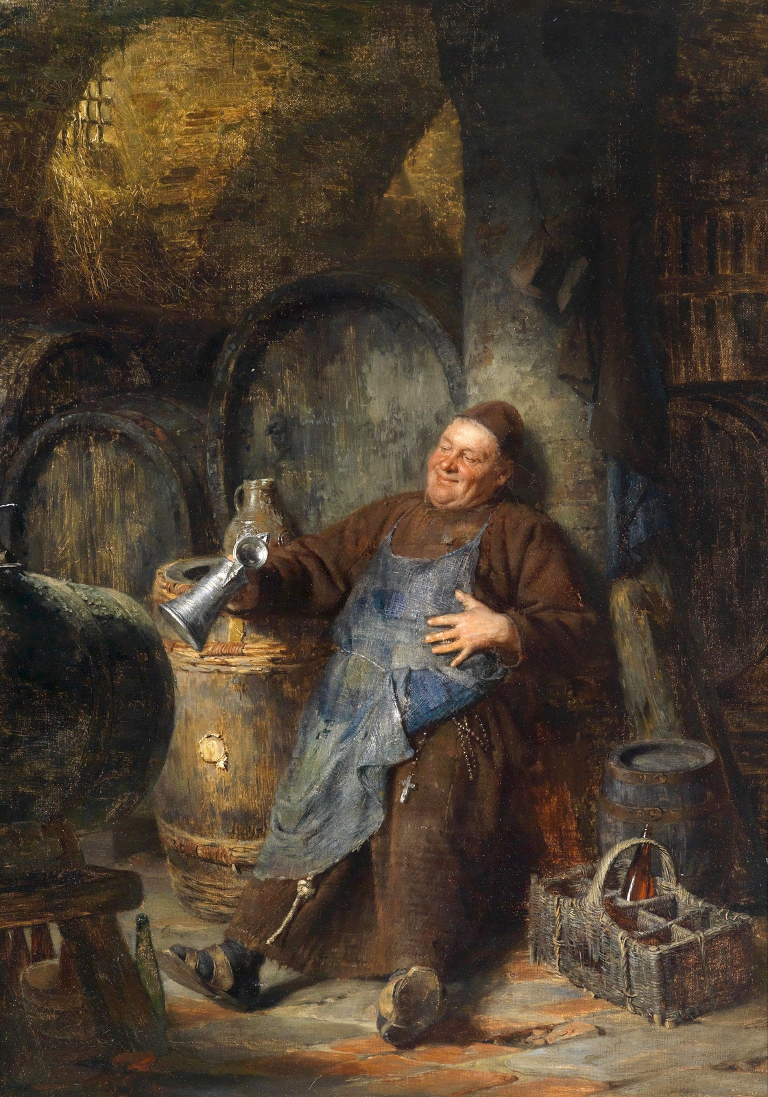Бенедиктинский монах с кружкой вина на поздний завтрак