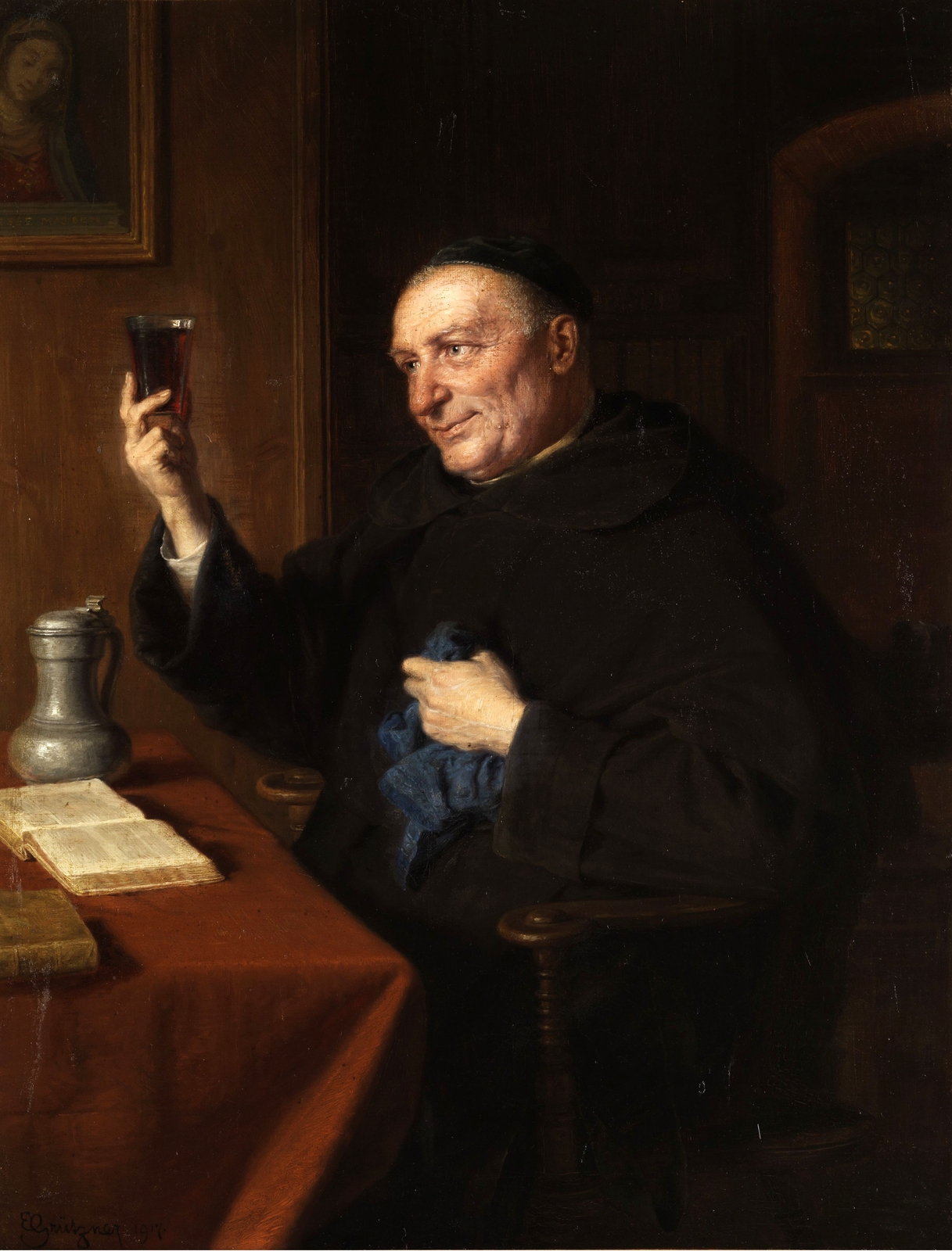 1917_Монах с бокалом вина