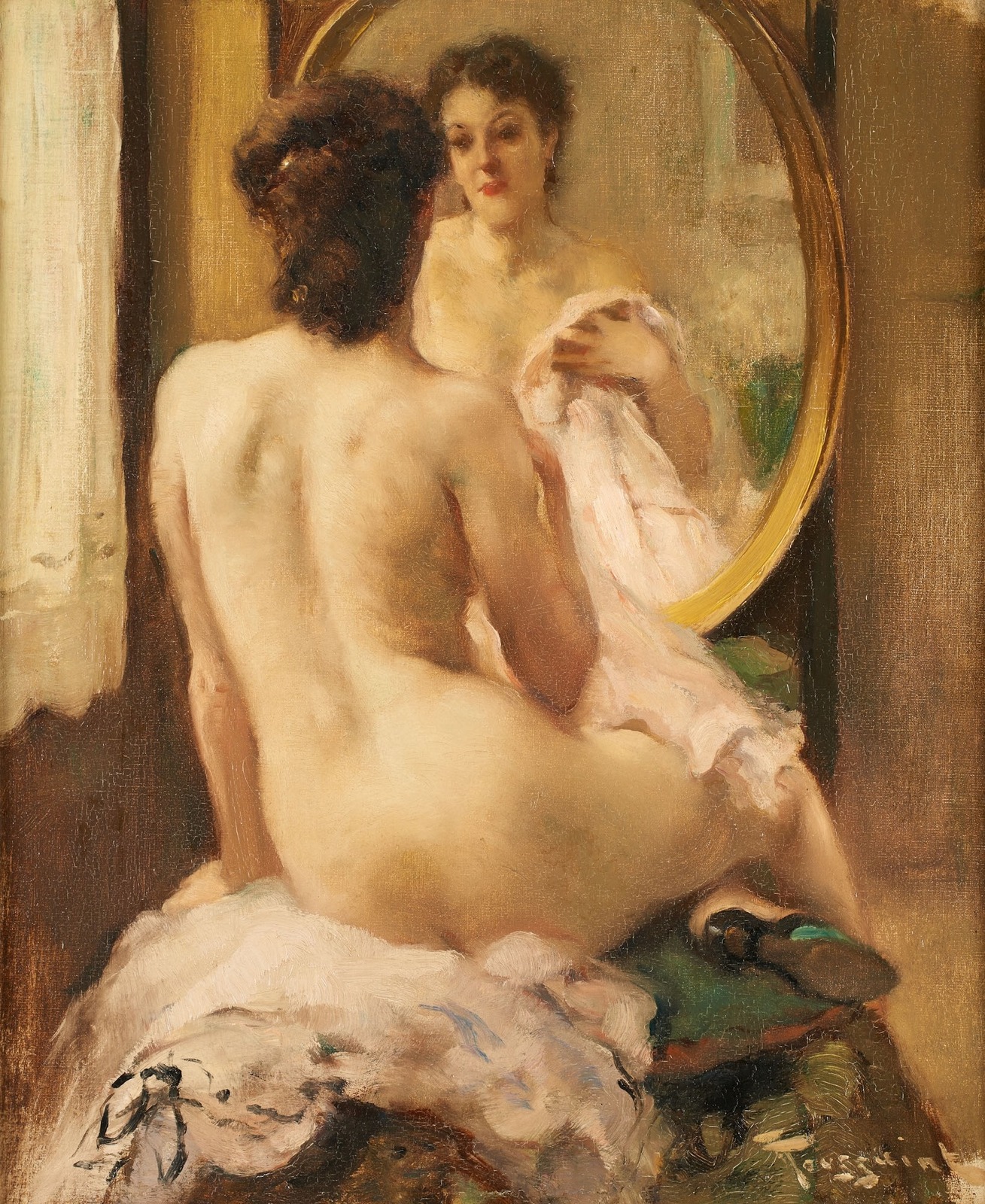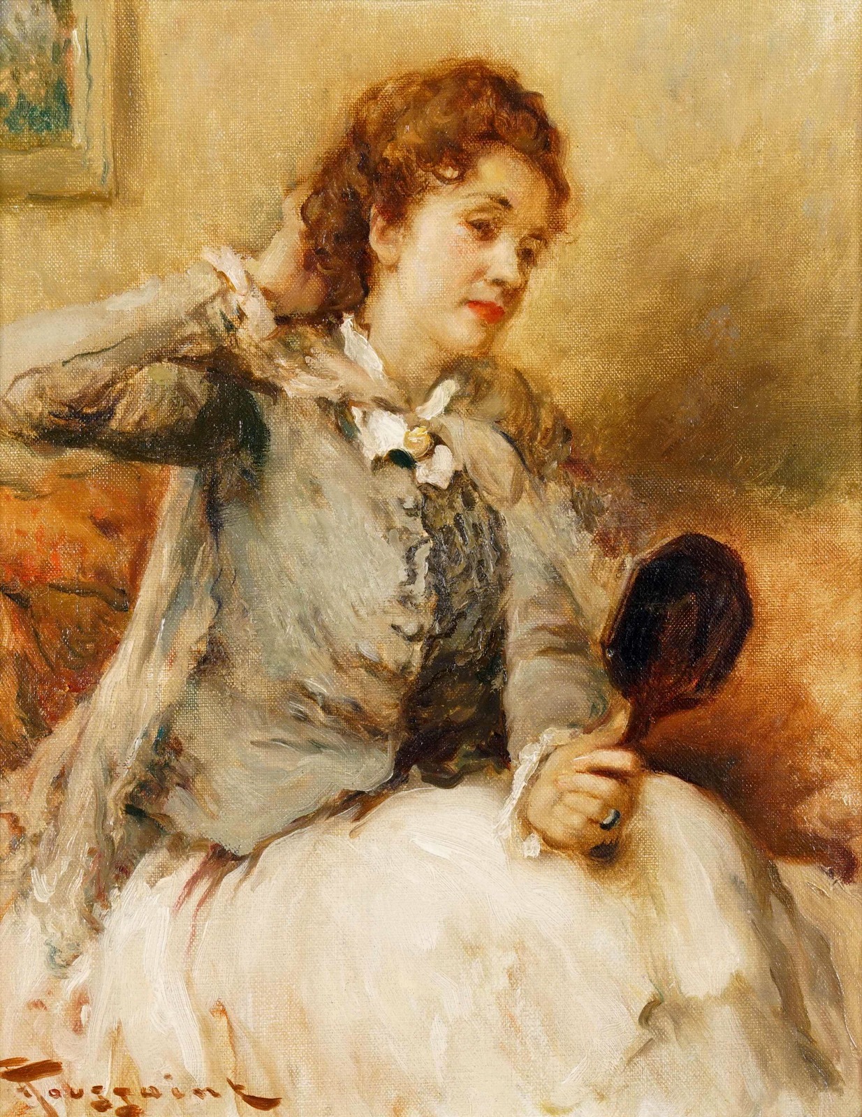 Молодая женщина, глядящаяся в зеркало (Jeune femme se regardant dans le miroir)_46 х 37.5_х.,м_Частное собрание
