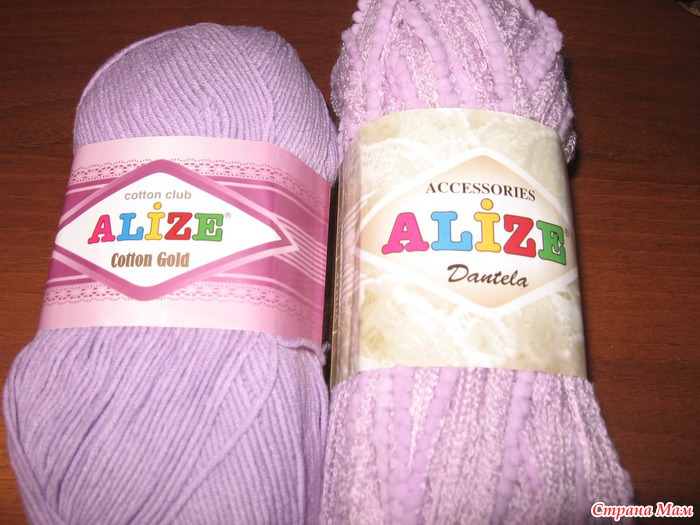 Я буду использовать пряжу : Коттон Голд от Ализе ( 55% хлопок, 45% акрил, 100гр/330м). Обвязку по краям хочу попробовать сделать Дантеллой, но еще подумаю.