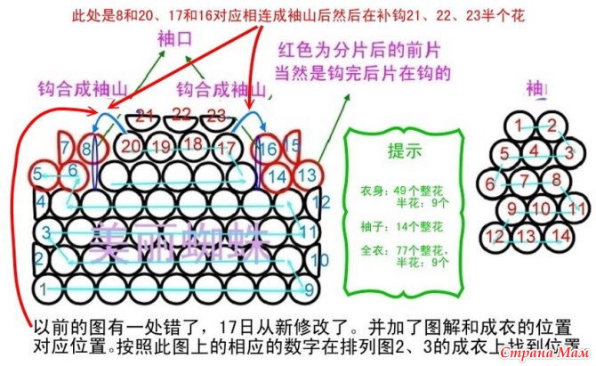 Лично я мечтала связать синий жакет. Начала вязать мотив по его схеме, но никак не могла справиться с безотрывным вязанием. Пошла, погуглила, и нашла белый жакет с похожей схемкой. В итоге у меня будет микс из этих моделей: схема мотива у меня по синему жакету, а соединение мотивов - по белому (т. е. в шахматном порядке).