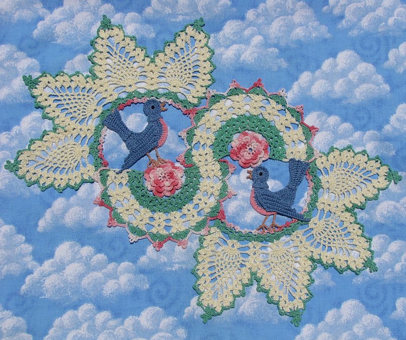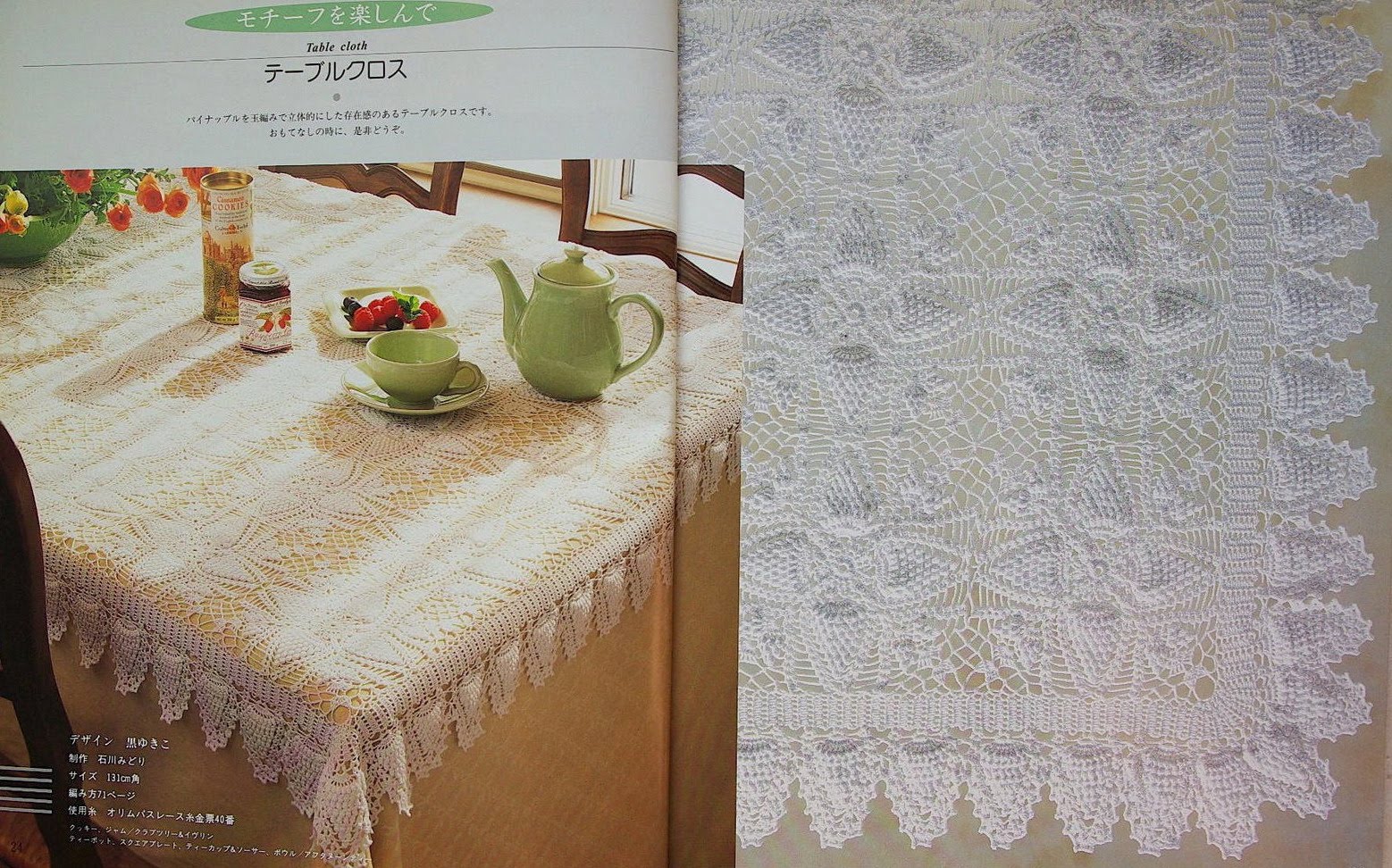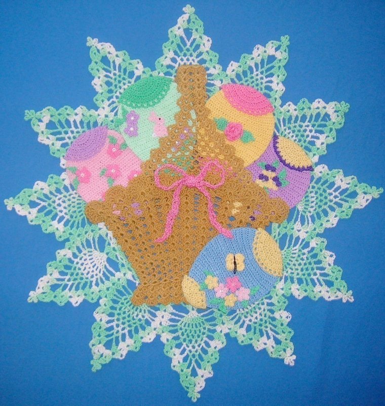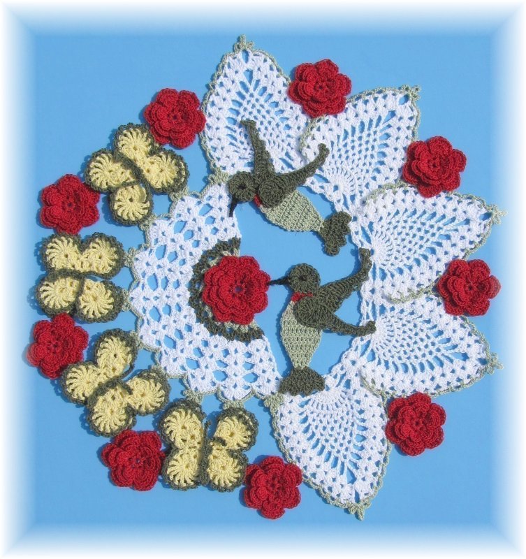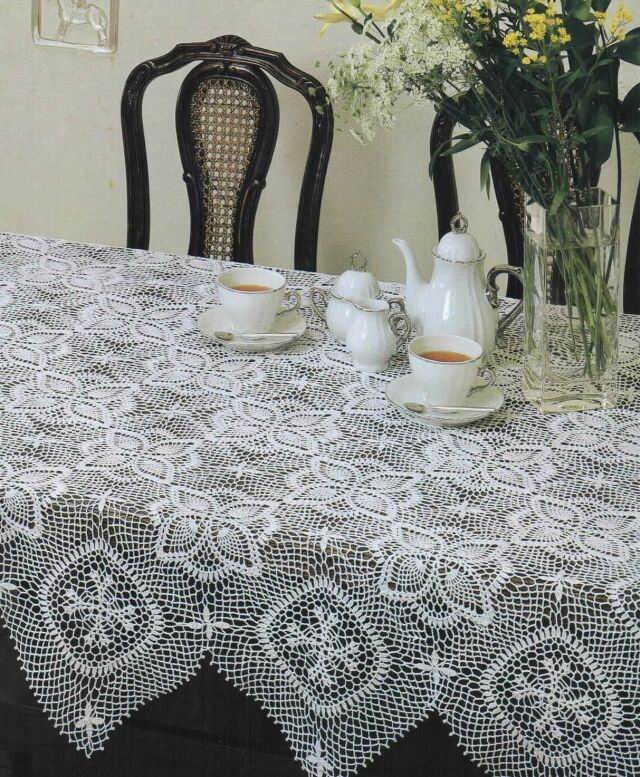[показать]Эту вязаную скатерть обрамляют бабочки, составленные из рисунка "ананас".