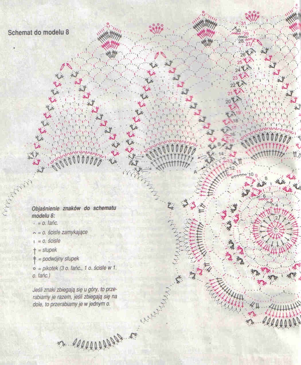 [показать]Схемы, правда, небольшие, но читаемые. В одной дорожке сочетаются: филейное вязание, ираландские "цветочки" и "бабочка" рисунком ананас.