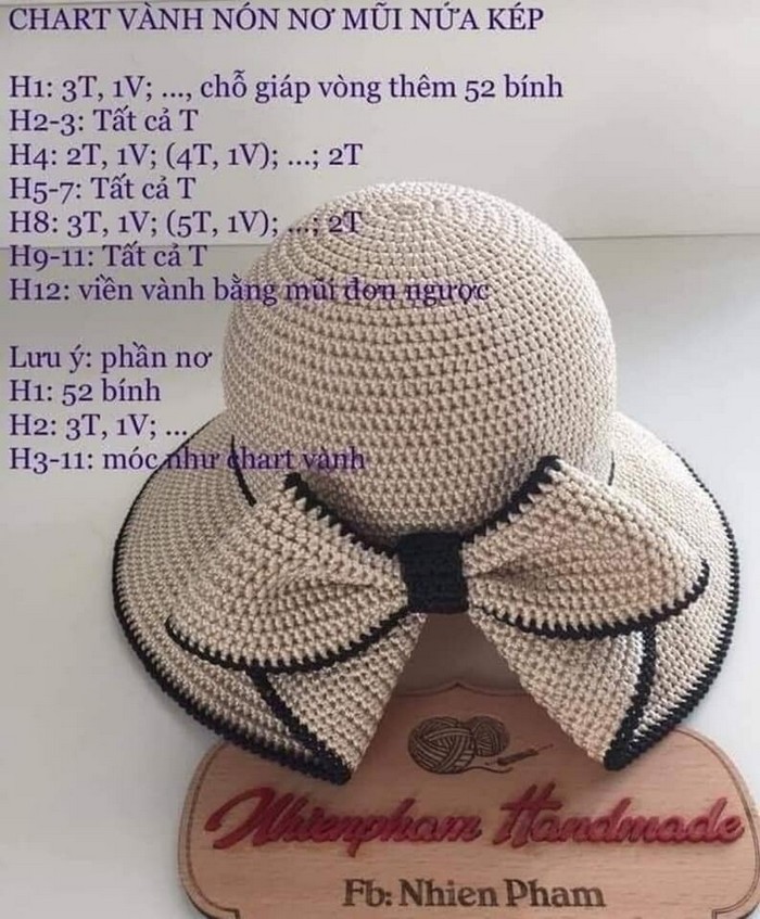 Шикарная шляпка с цельно вязанным бантом крючком. Вяжем по схеме, но там где будет бант, продолжаем вязать по кругу, не привязывая в шляпке нужную длину, затем скрепляем отдельно связанной полоской, придавая форму банта. Ширину полей можно сделать по желанию.