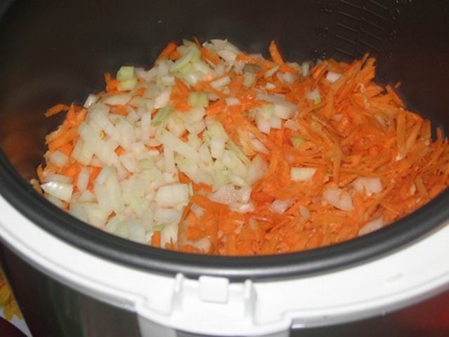 В мультиварке все продукты закладываются слоями. В данном случае это очень хорошо и правильно. Не забываем присаливать и посыпать приправами каждый слой.