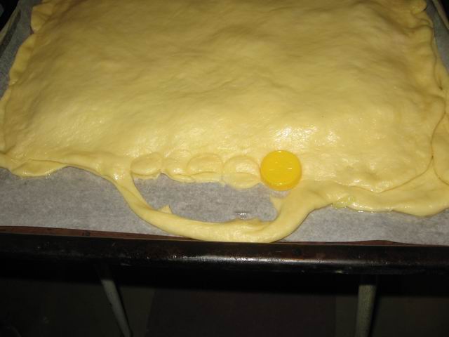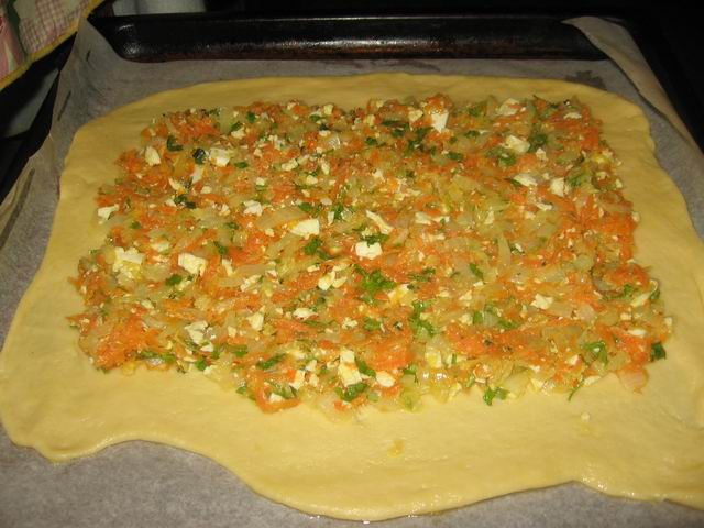 Тесто разделить на 3 части. 2 пойдут для пирога, одна - на рулет, который приготовлю чуть позже.