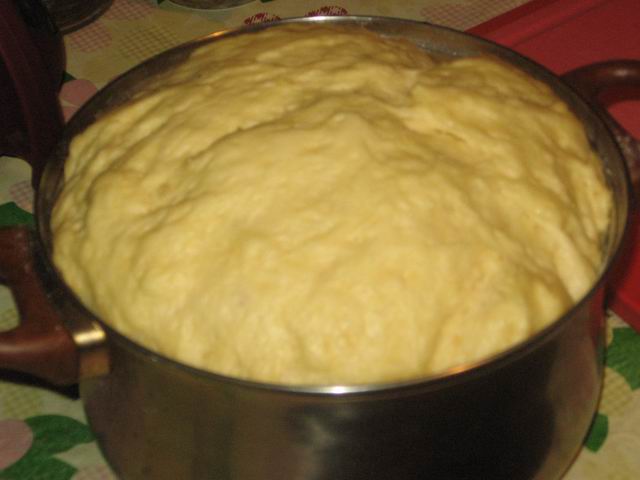Много муки сыпать не надо. Готовое тесто поставить в тёплое место для подъёма часа на 2, потом омять, дать снова подойти.