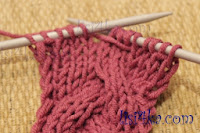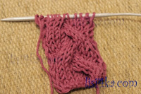 Наше переплетение готово: мы перекрестили три петли влево, оставив три петли перед работой без дополнительной спицы.