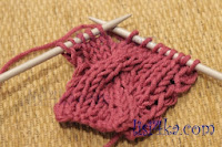 Снимаем три петли, являющимися одним переплетением, на рабочую спицу не провязывая их.