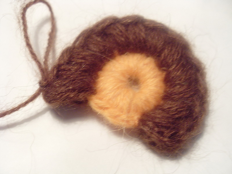 Дале берем белую нить, обвиваем серединку, вводя нить в кольцо (в образце 7 витков).