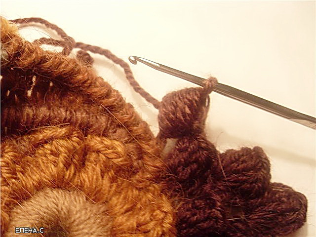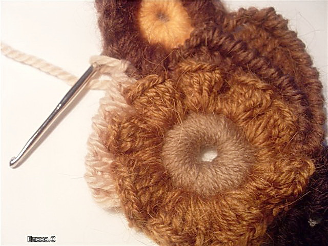 Далее обвязываем серединку по периметру витыми столбиками (например, 7 витков, 14 столбиков).