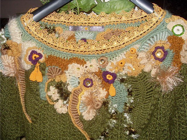 Суть техники фриформ – можно все. Никаких ограничений ни по цвету, ни по фактуре пряжи, только ваш вкус, чувство меры и полет фантазии! В основе любой композиции в фриформе- контрастность. Здесь все построено на этом принципе. Но не только в цвете, как мы привыкли, а еще в сочетании выпуклых и гладких участков, участков разреженного полотна (ажур, сетка) и плотного вязания, блестящей и матовой нити. Всегда стараясь тщательно подбирать цветовую гамму в своих работах, я пришла к выводу, что должна быть только теплая или только холодная гамма, смешивать их нельзя, плохо получается в результате. Потом должна быть идея произведения. Что вы хотите получить на выходе? Для себя во фриформе я придумываю что-то типа девиза, трех слов, которые и передают суть работы-произведения, пример: море-жара-песок; ель-дождь-полянка. Далее все мотивы должны быть одного стиля, даже разные по форме. То есть, если это фантазийные мотивы - то все (листья, круги, загогулины ) должны быть - выдержаны в этом стиле. Если повторение природных мотивов - то соответственно.