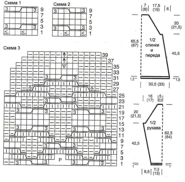Для проймы рукава через 42,5 см = 110 р. от планки закрыть с обеих сторон 1 х 4 п. = 69 (75) п.