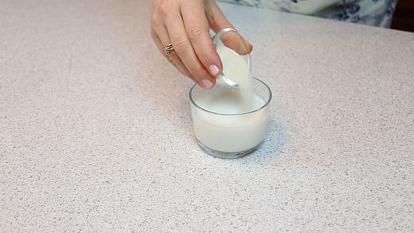Желатин всыпаем в холодное молоко и оставляем на некоторое время набухнуть.