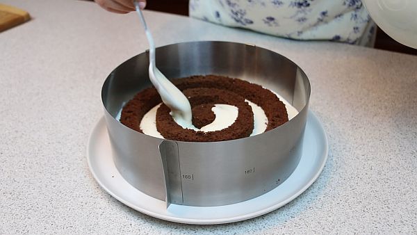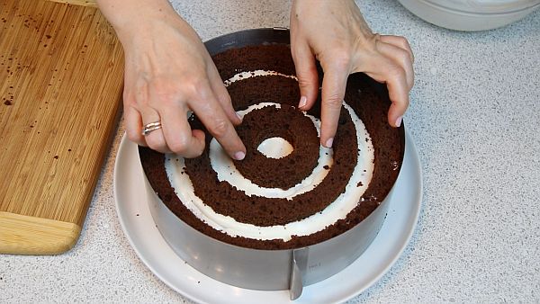 Аккуратно заполняем кремом пространство между кольцами.