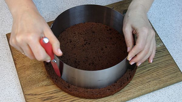 Из бисквита вырезаем ровный корж высотой 2 см.