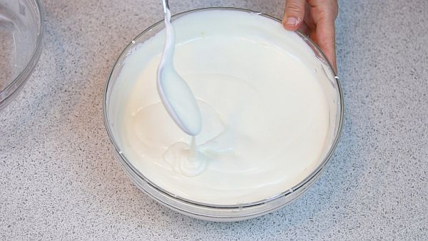 Можно вмешивать сливки миксером, но только быстро, коротко, на малых оборотах, чтобы не растерять ту воздушность, которой мы добились взбиванием сливок. И наш крем готов.