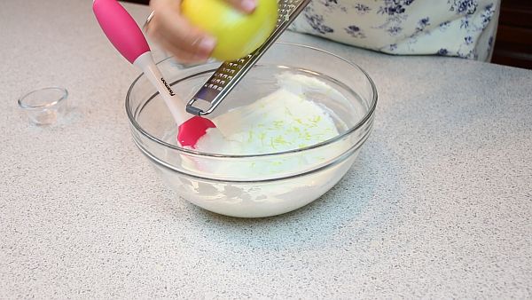 В творог добавляем ванильный сахар и большую часть необходимого по рецепту сахара. Оставляем примерно 1/5-1/6 часть, с этим сахаром мы будем взбивать сливки. Добавляем цедру лимона,
