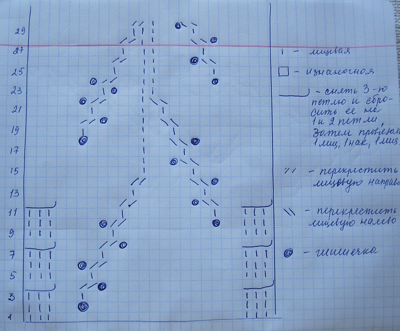 На размер M (L) набрать 48(52) петель и провязать 10 рядов резинкой 2х2. Затем приступить к вязанию голени. Узорная полоса выполняется на 24 петлях, как сделать шишечки крючком рассказано