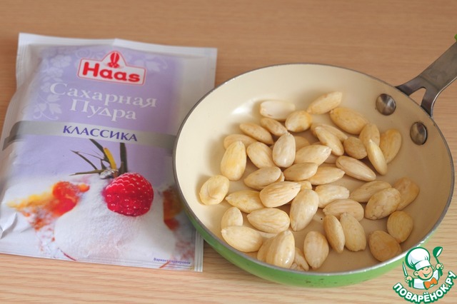 Измельчить миндаль в кофемолке в не крупную крупку. |