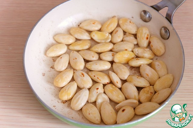 Миндаль залить крутым кипятком, остудить, затем почистить. |