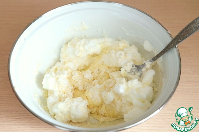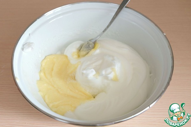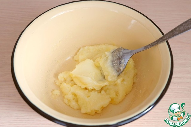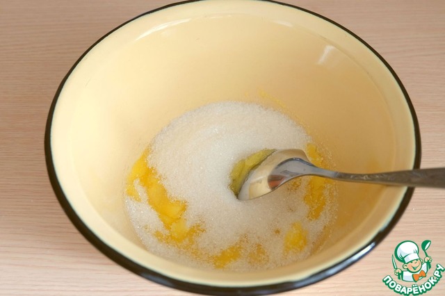 Соединить в миске размягченное сливочное масло, яичный желток и сахар. Смесь хорошо растереть до однородного состояния. |