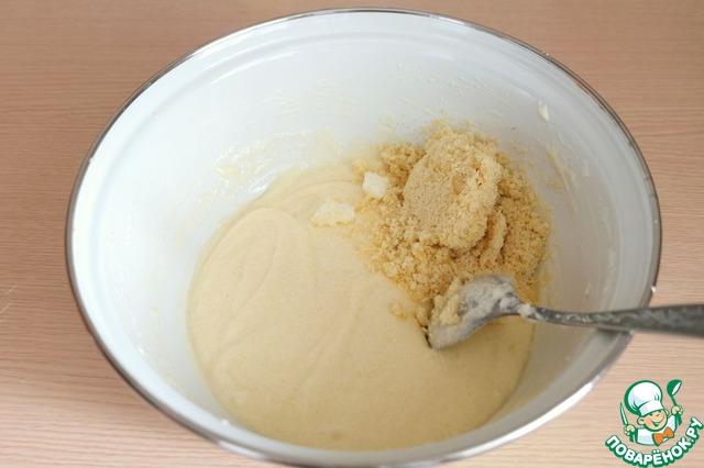 Добавить в тесто миндальную крошку. Быстро и тщательно перемешать. |