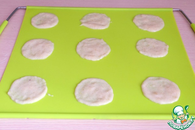 Хочу обратить внимание, что печенье следует выпекать на силиконовых ковриках или силиконовых противнях! На силиконовый противень чайной ложкой выложить тесто, блинчик разровнять. Поместить силиконовый противень в разогретую до 180С духовку, выпекать каждую партию печенья в течение 5-6 мин. |