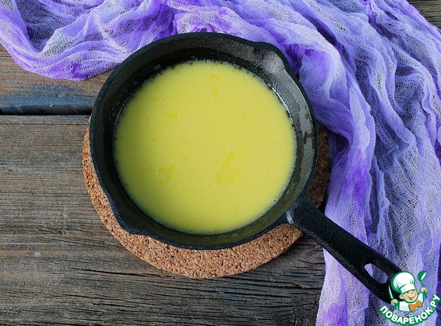 Вторую половину молока подогревает вместе со сливочным маслом (30 г) |