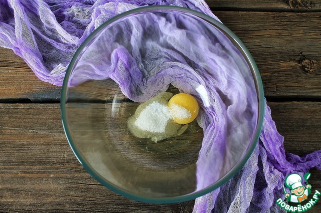 Яйцо взбиваем вместе с солью и оставшимся сахаром (1ст. л.), можно добавить ванильный сахар |