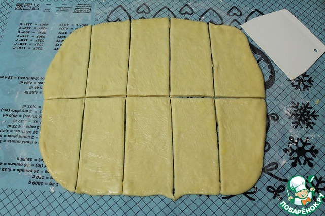 Тесто разрезаем на прямоугольники. |