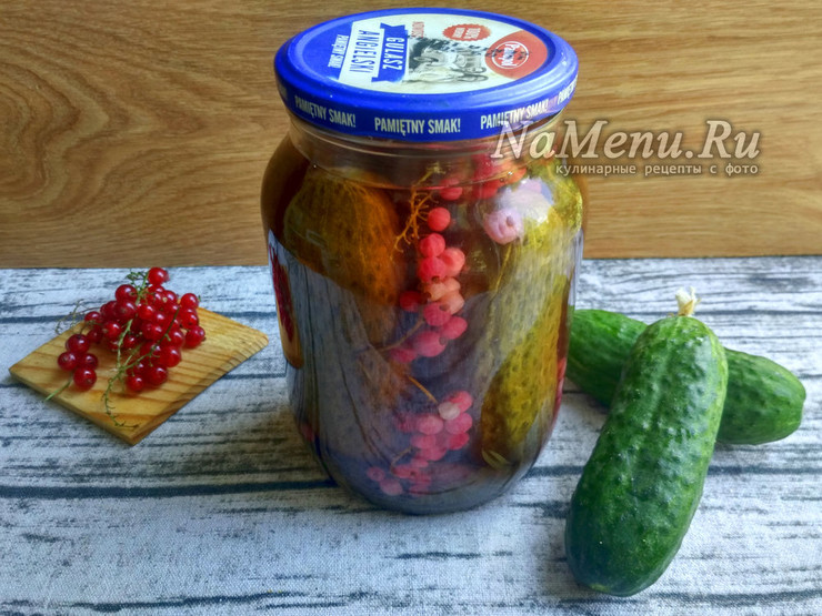 Это очень вкусные маринованные огурцы с красной смородиной. Рецепт приготовления очень простой, огурцы получаются вкусными и хрустящими. |