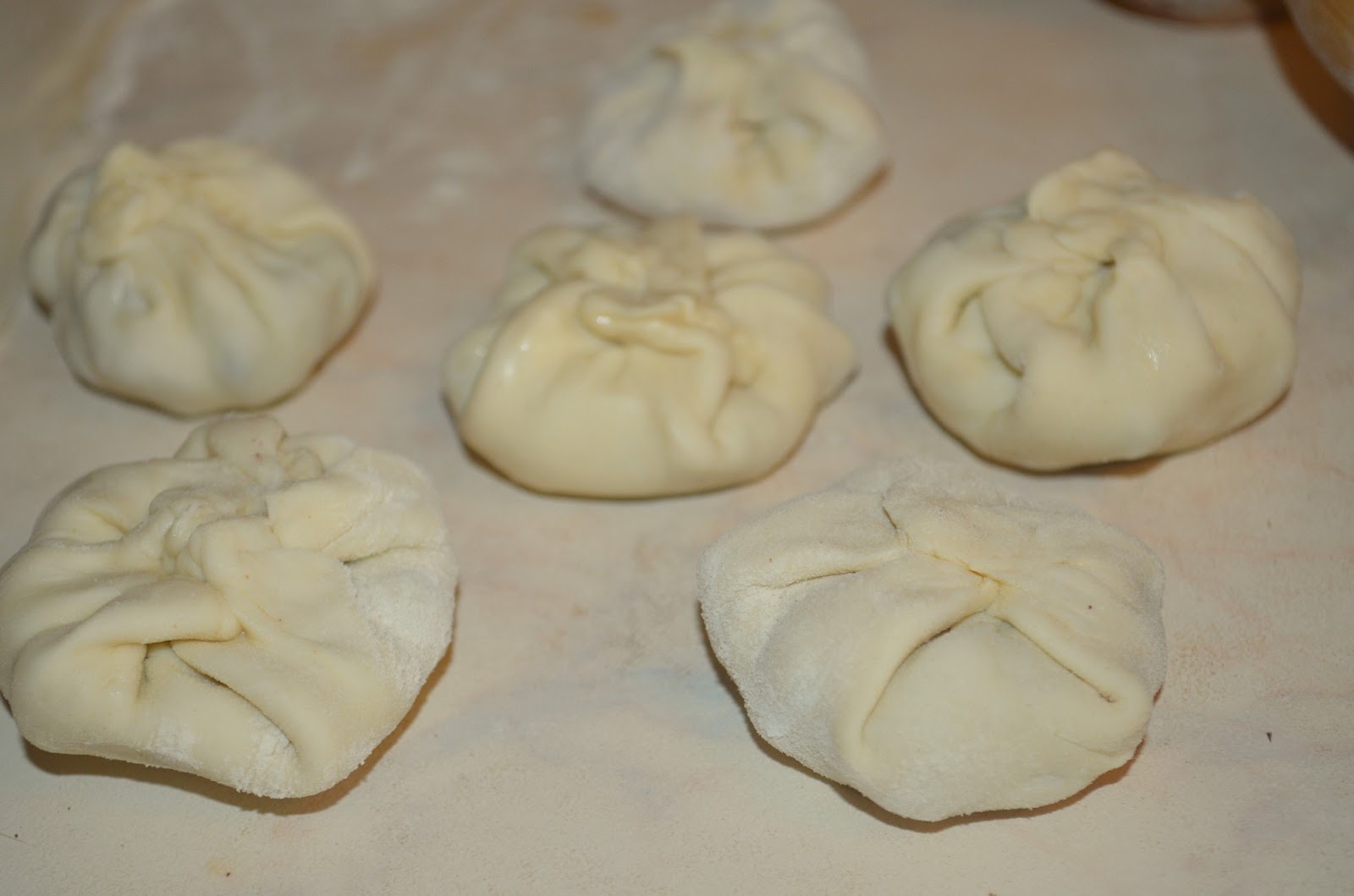5. защипнуть края к центру, как бы делая мешочек, такие манипуляции делаем со всеми кружочками теста..