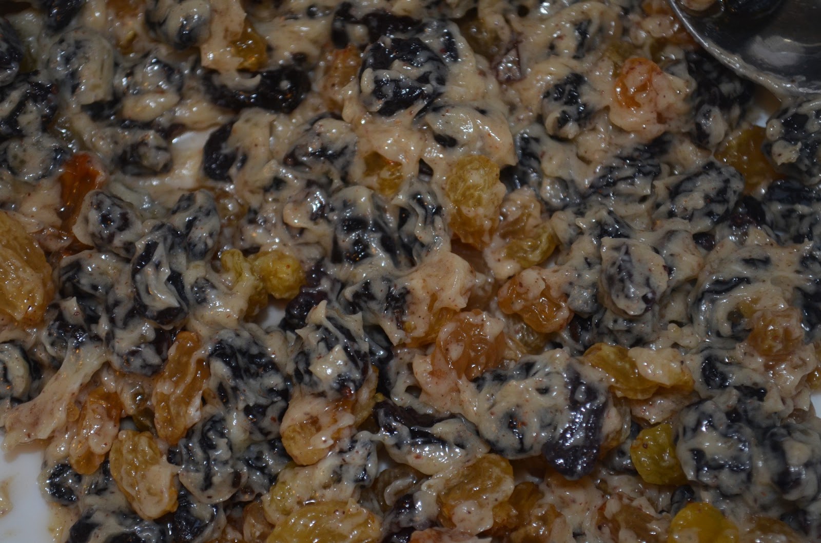 2. добавляем изюм (помытый и просушенный) и ром, все перемешиваем