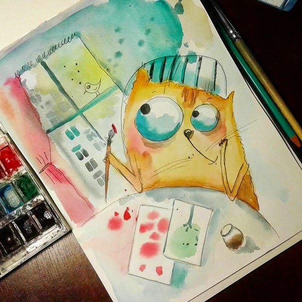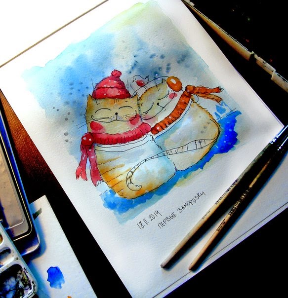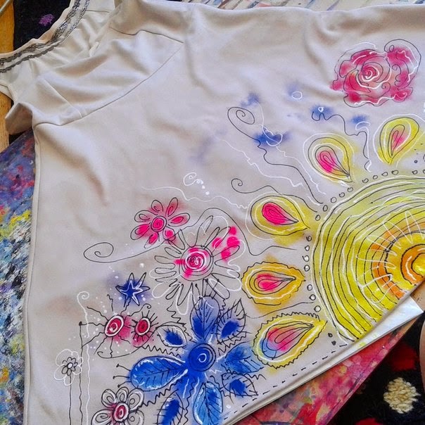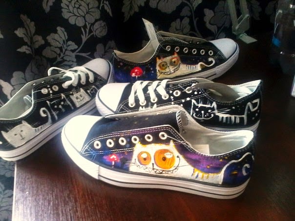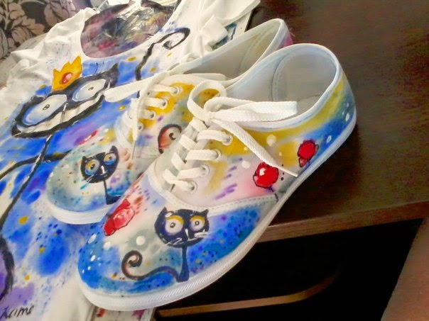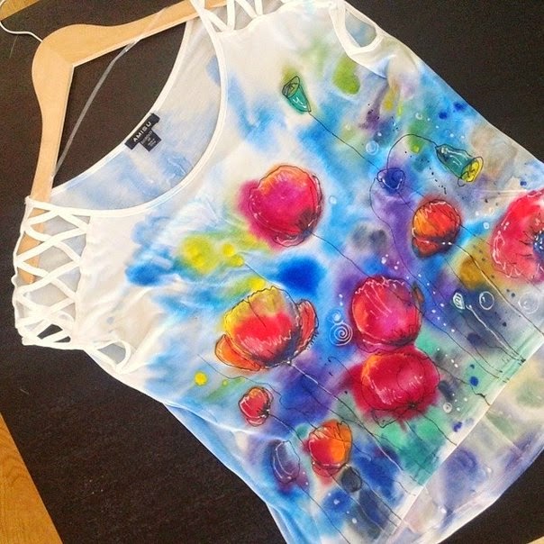 Ее работы меня поразили в самое сердце, заставив искренне восхищаться талантом абсолютно незнакомого мне человека. В числе ее произведений не только открытки, рисунки акварелью, маслом, но и удивительные переделки майки, платьев, обуви и даже головных уборов. Все переделки вещей легко повторить своими руками тем, кто умеет рисовать.